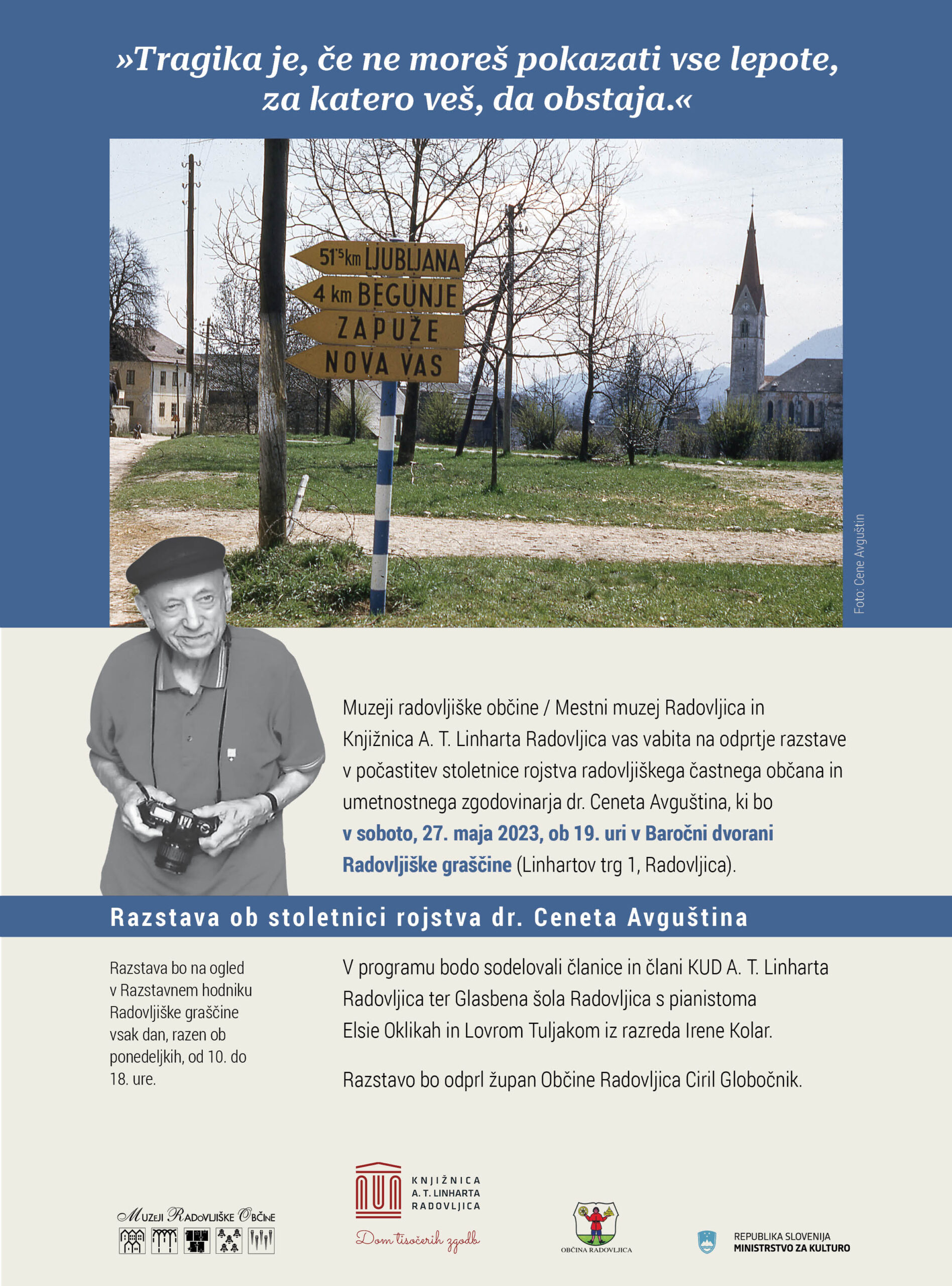 View Larger Image Odprtje razstave o dr. Cenetu Avguštinu2024-10-19T18:06:52+02:0024. maja 2023|Kategorije: Mestni muzej, Občasne razstave|Foto naslovne fotografije: Damir GlobočnikDelite Podobne vsebine Pranger I festival kritike, prevoda in branja poezije 21. septembra 2025| 0 komentarjev Mednarodni likovni simpozij Slovenija odprta za umetnost, Sinji vrh 27. avgusta 2025| 0 komentarjev Vojni foto kolaž. Druga svetovna vojna skozi fotografski objektiv Slavka Vengarja 29. maja 2025| 0 komentarjev